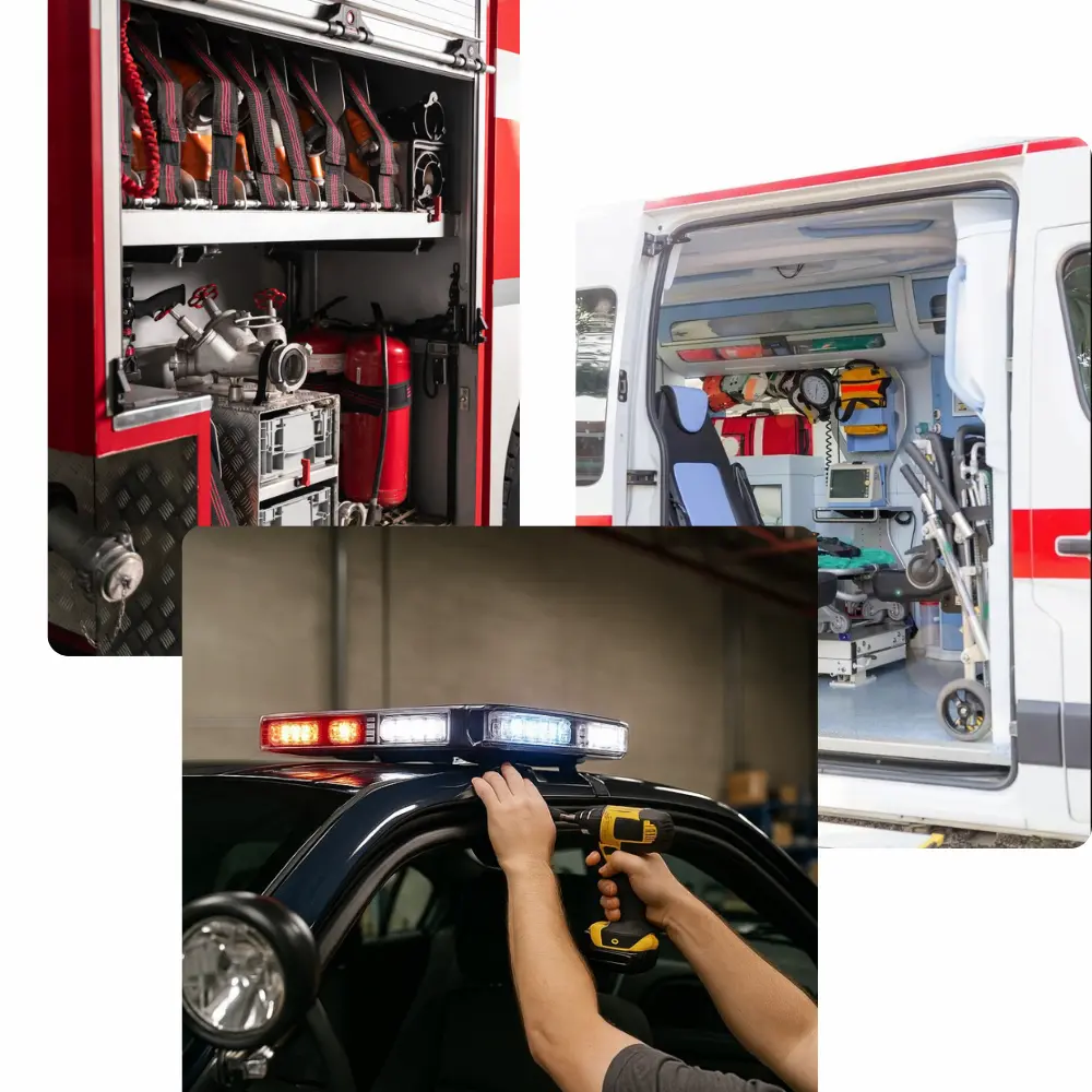 At Fleet Light and Safety Hardware, we understand the critical role emergency vehicles play in keeping communities safe. Our skilled technicians deliver dependable, high-quality installations tailored to the needs of law enforcement, fire, and EMS. With industry-leading equipment, meticulous attention to detail, and a reputation for reliability, we ensure every vehicle is ready to perform when it matters most.